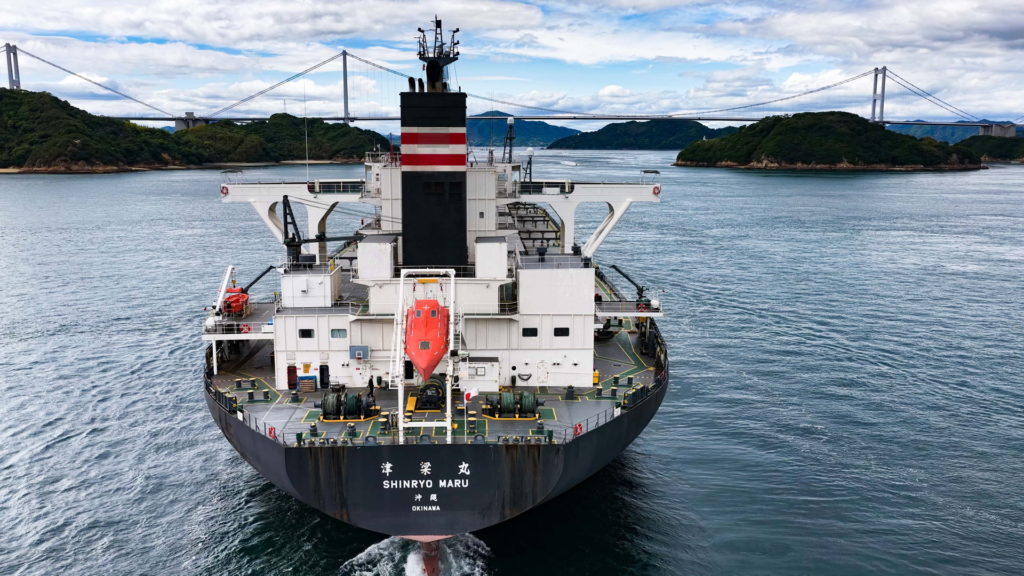 石炭専用船「 SHINRYO MARU 津梁丸(しんりょうまる) 」日本郵船 投稿者: drone2025年8月15日2025年8月15日Cargo Vessels、Ship空撮 ■概要船名 SHINRYO MARU 津梁丸(しんりょうまる)全長 :234.99メートル全幅 :43.00メートル夏期満載喫水 :12.882メートル総トン数 :5万2156トン載貨重量トン数:9万2049トン造船所 :大島造船所船籍 :日本