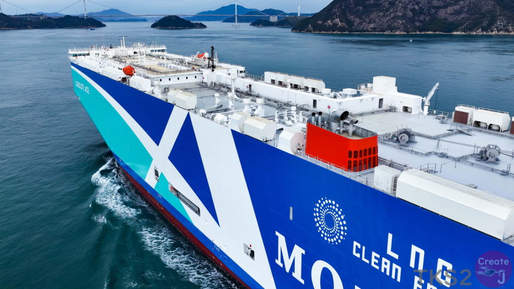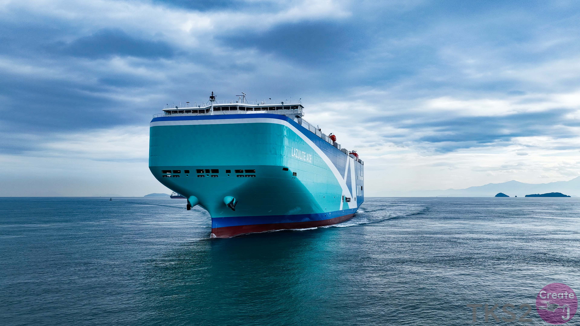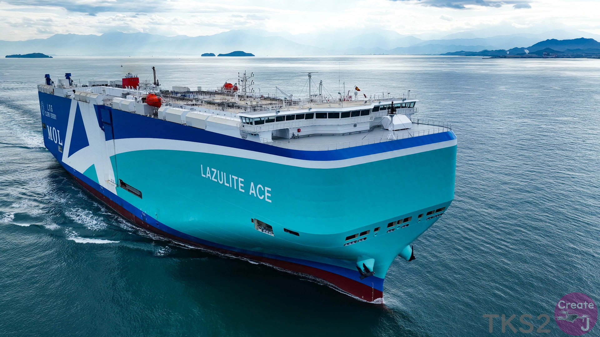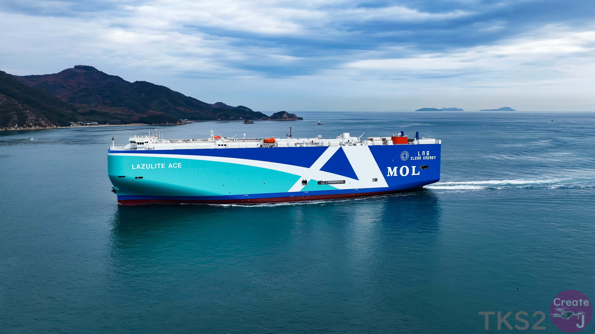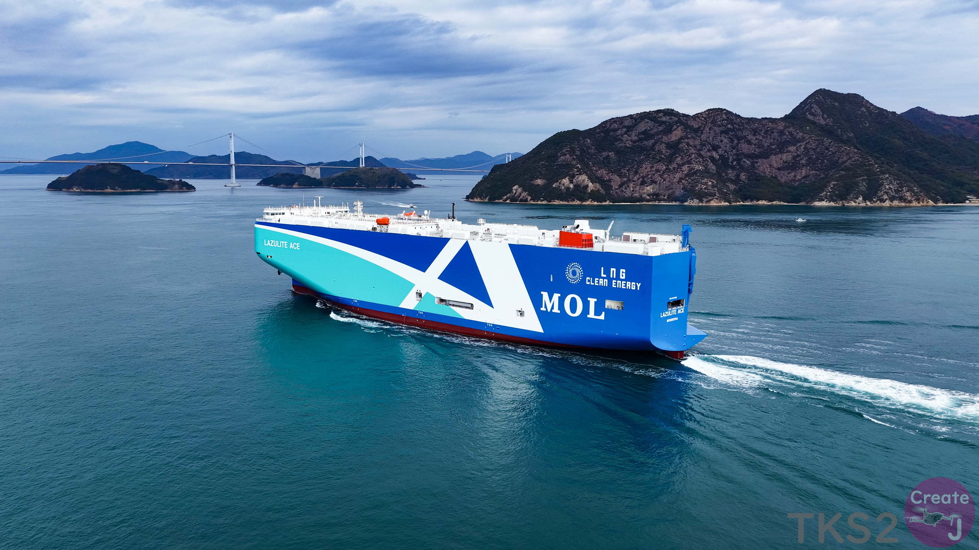 今回は、尾道造船を出渠し新門司港へ回航です。普段昼間にはこの来島海峡では見られません。
