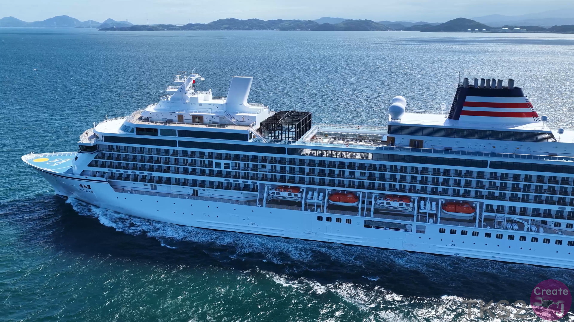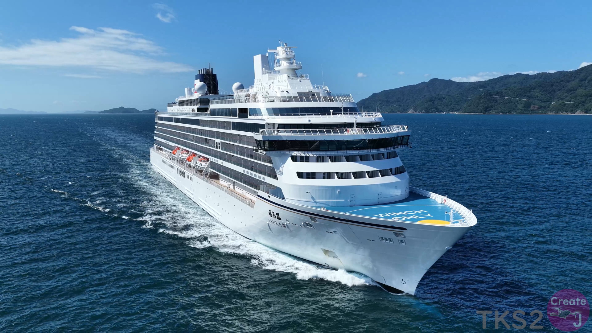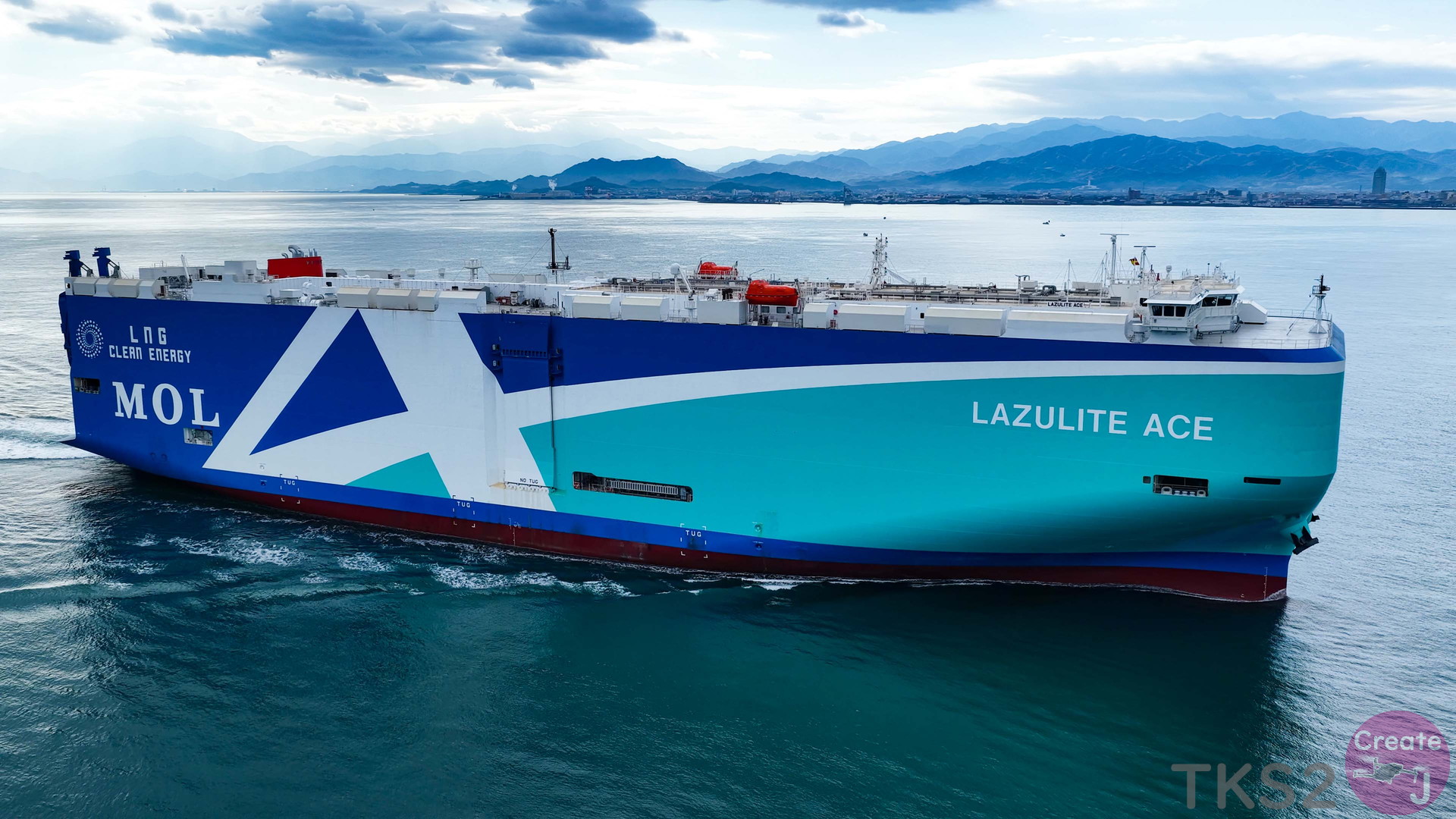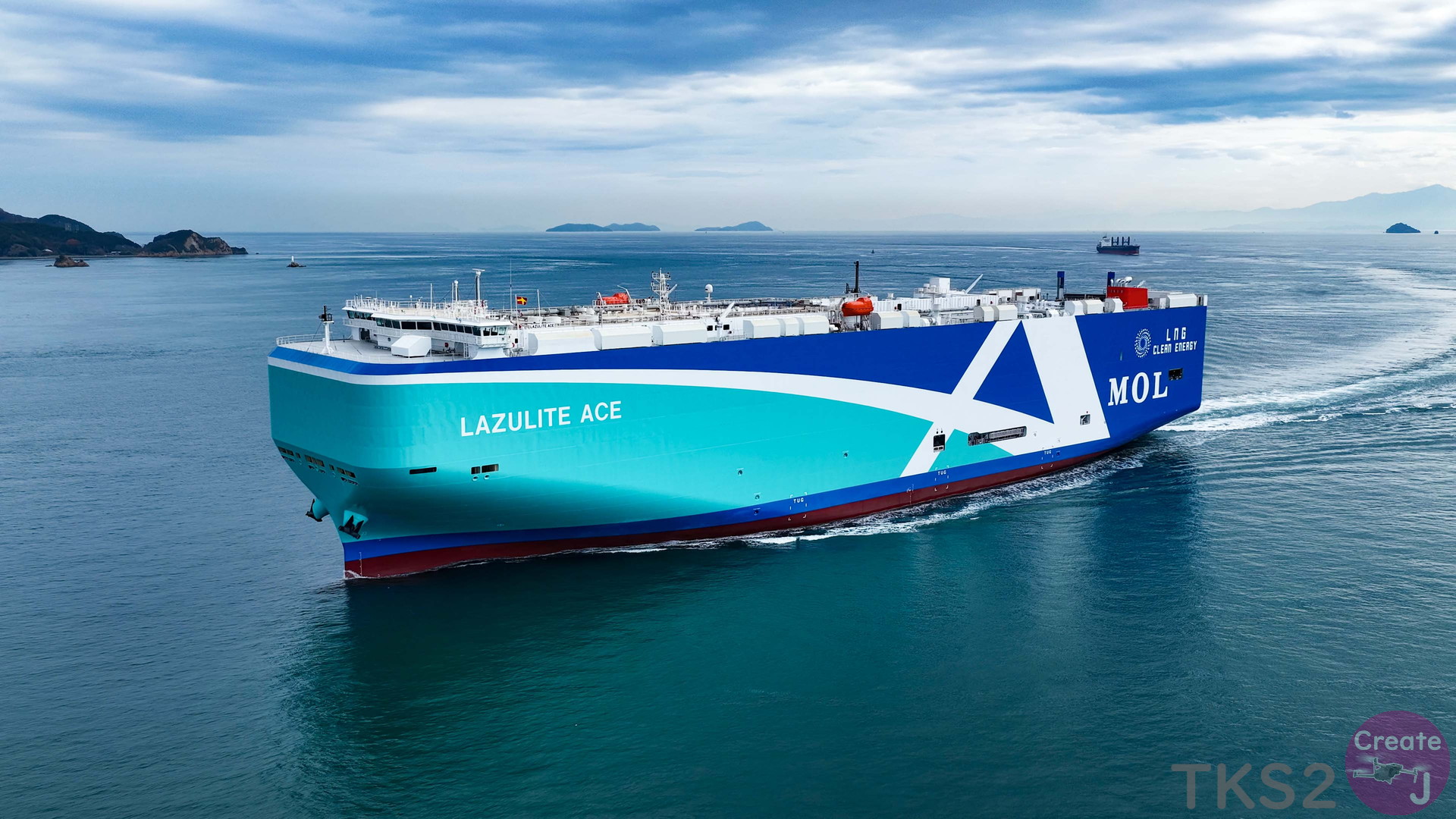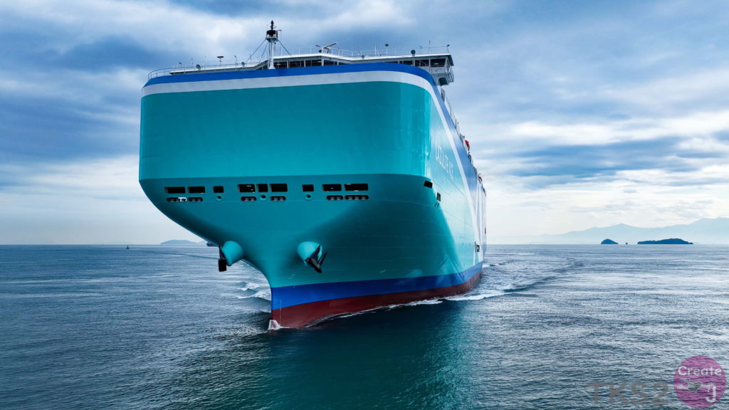 今回は、尾道造船を出渠し新門司港へ回航です。普段昼間にはこの来島海峡では見られません。
